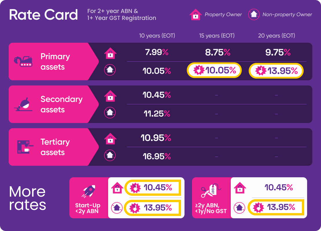 9.75% EQUIPMENT FINANCE RATE UPDATE As of 1 February, our base rate for equipment finance is 9.75%. We are proud to offer flexible financing options for your clients, considering older assets and applicants with ATO debt. Standout features: - No rate add-ons: Access the base rate on secondary and tertiary assets, plus sale-back and capital-raise transactions on eligible asset classes