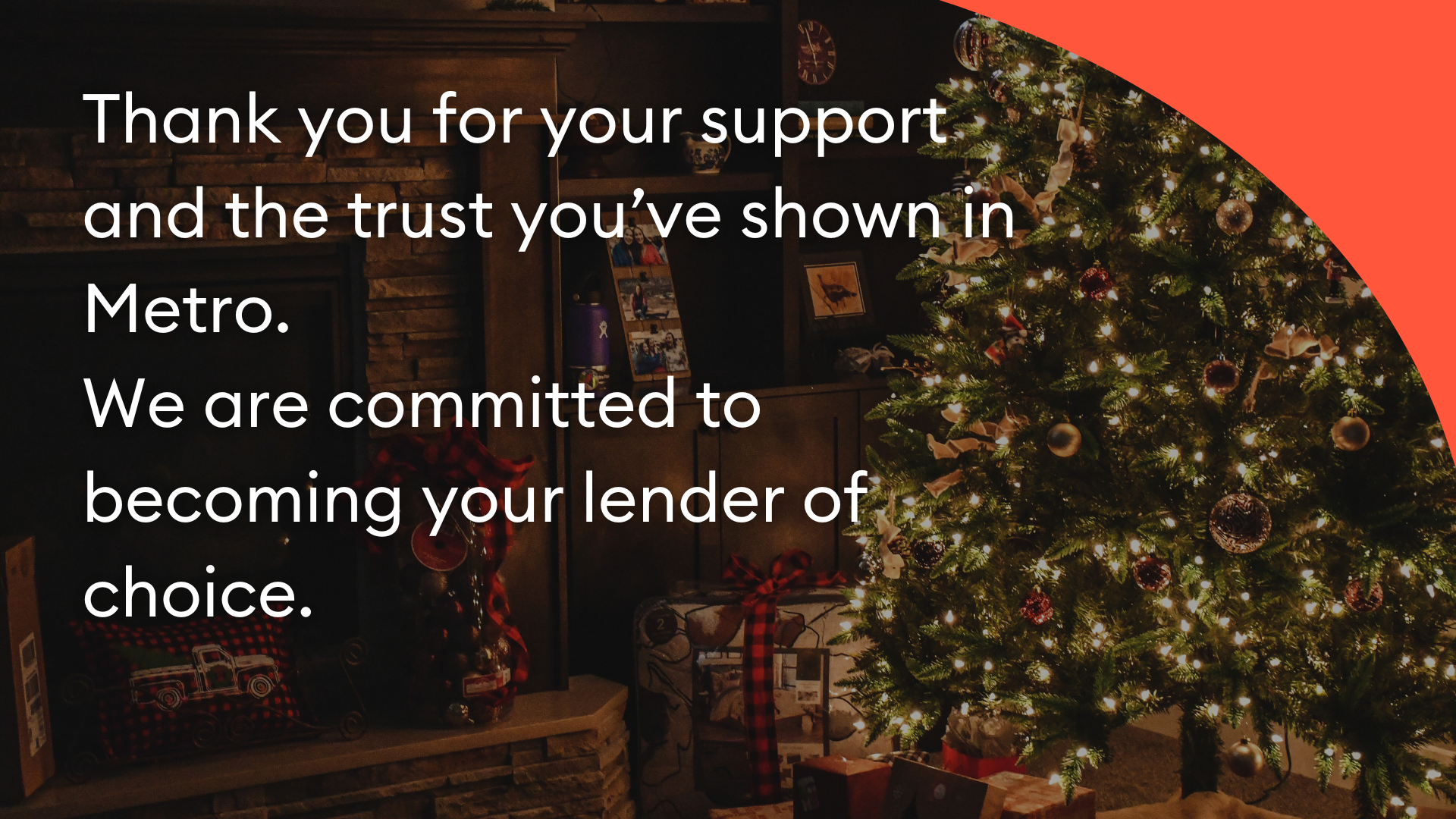 Metro Finance will be increasing our rates by 20 basis points for all new applications, effective the 10th of December 2025. We will honour the current rates for all settlements up to Wednesday, 24th of December 2025. |