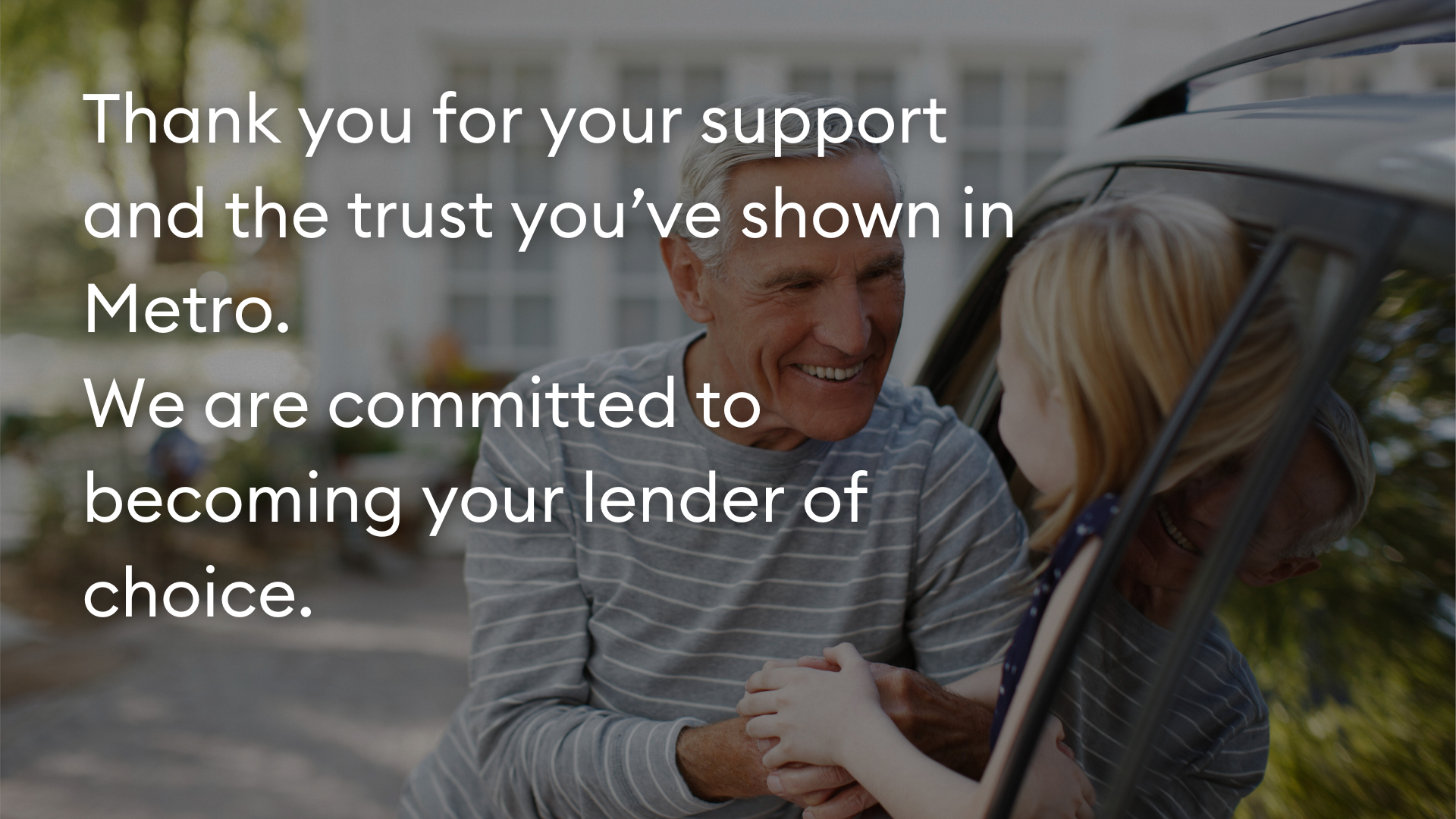 Metro Finance will be increasing our rates by 15 basis points for all new applications, effective from Tuesday, 24 February. We will honour the current rates for all settlements up to Tuesday, 10 March. |